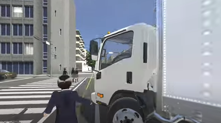 「まなVRクラウド」では、左折するトラックの死角に入った自転車が巻き込まれる事故についてのシミュレーション映像が流れます。